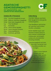 Asiatische Gemüsespaghetti mit Granatapfel und gerösteten Erdnüssen